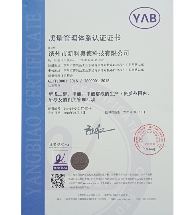 濱州市新科奧德科技有限公司成立于2007年,幾年來企業(yè)規(guī)模不斷擴(kuò)大,經(jīng)濟(jì)效益與社會(huì)效益不斷提高,實(shí)現(xiàn)利稅連年遞增,生產(chǎn)經(jīng)營由過去單一產(chǎn)品的開發(fā)模式向多元化模式發(fā)展,公司坐落于黃河三角洲美麗的董永故里,呂劇起源地——山東博興,是新戊二醇、甲酸...